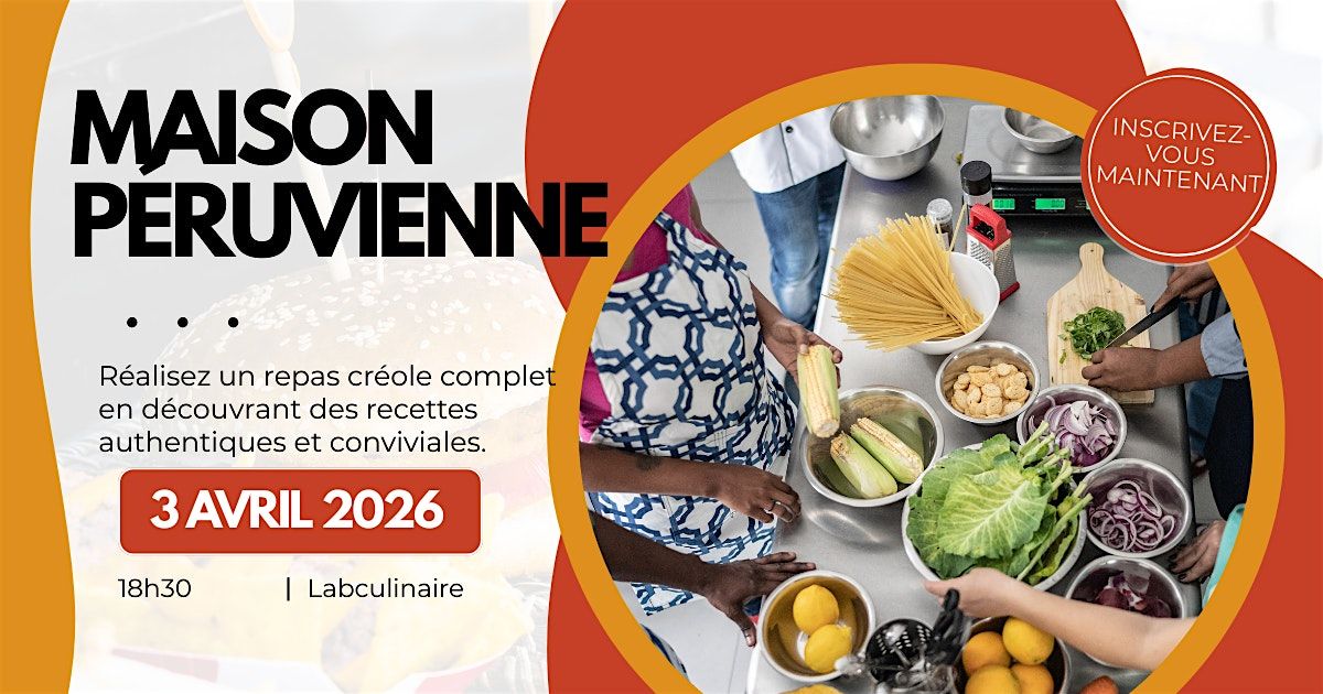Rejoins-nous le 3 avril 2026 à 6:00 PM (Eastern Daylight Time) pour une soirée conviviale au 110 Rue Eddy. Découvre les saveurs authentiques du Pérou dans une ambiance décontractée. Que tu sois fan de la cuisine sud-américaine ou juste curieux, c’est l’occasion parfaite pour partager un bon moment et goûter des plats uniques. N’hésite pas à venir avec tes amis, on t’attend !