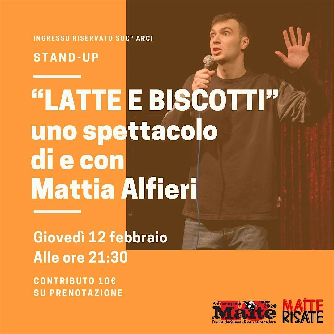 Spettacolo di standup comedy Latte e Biscotti di Mattia Alfieri, in apertura Carlo Vitulo