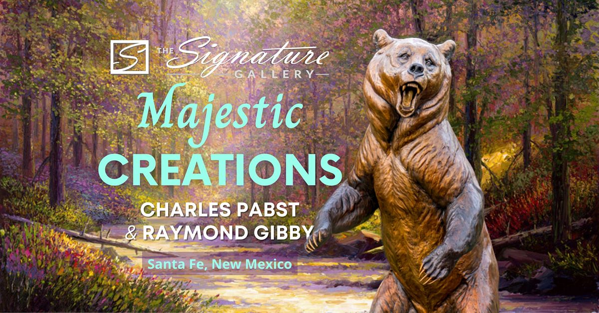 The Signature Gallery will host both Charles Pabst & Raymond Gibby for a champagne opening reception in Santa Fe, New Mexico on Friday, June 10th from 5 PM to 7:30 PM at 102 E. Water Street as we unveil a breathtaking body of work from our premier painter and sculptor duo. Titled, Majestic Creations, this exhibition will focus on the natural beauty found in the world around us- highlighted by Charles Pabst’s renowned landscape scenes and Raymond Gibby’s meticulously rendered wildlife sculptures.