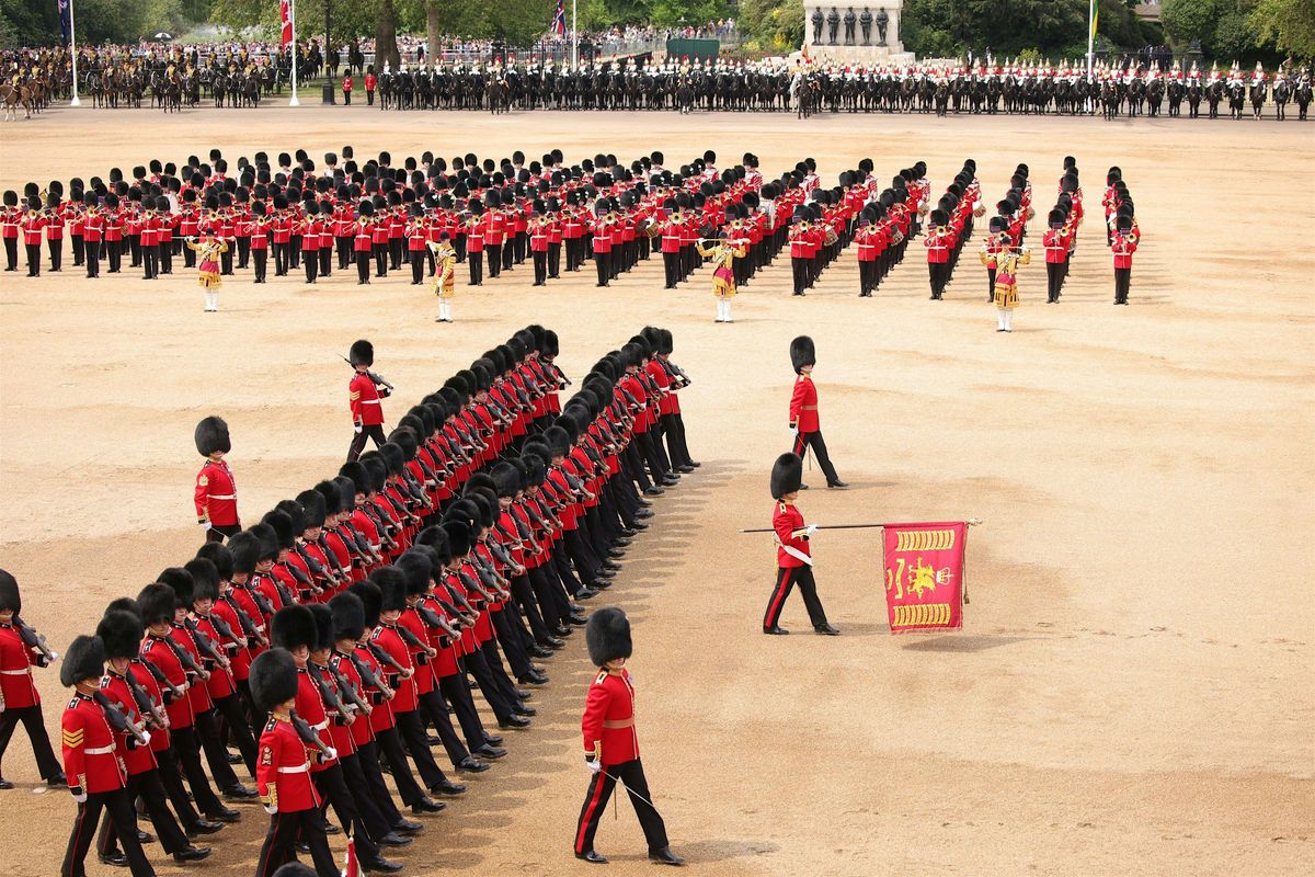 You'll see a full dress rehearsal for the 'Trooping of the Colour', as hundreds of Guardsmen and mounted Household Cavalry demonstrate months of intense preparation and hard work, all accompanied by the splendid music of the Household Division Bands. The Major General Commanding the Household Division, Major General James Bowder OBE, will take the salute.