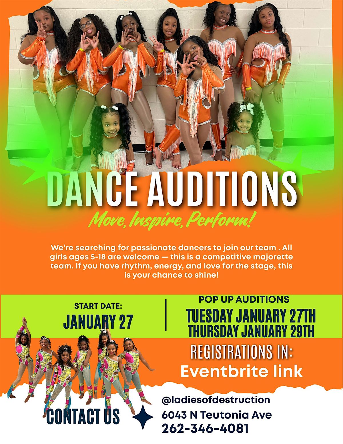 Auditions are a two day process all days must attended for. March 19th Choreography to the dance will be taught and March 20th will be endAgenda