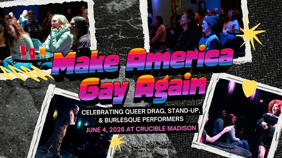 Kick off Pride with Cheshire Cat Comedy's hit show featuring a scintillating lineup of queer stand-up, burlesque, and drag performers as they unite to MAKE AMERICA GAY AGAIN at Crucible Madison on Thursday, June 4.