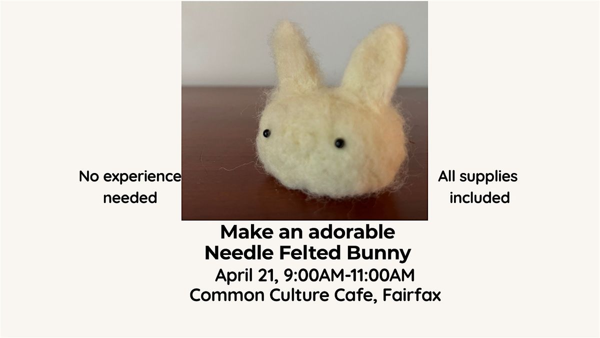 Join us at Common Culture Specialty Coffee & Brunch for a fun, hands-on workshop where you'll create your very own needle felted bunny! Whether you're a beginner or just looking for a relaxing crafty morning, this event is perfect for you. We'll meet on April 21, 2026 at 9:00 AM (Eastern Time). Come enjoy great coffee, brunch vibes, and some creative fun. Can't wait to see you there! No experience necessary and all supplies provided.