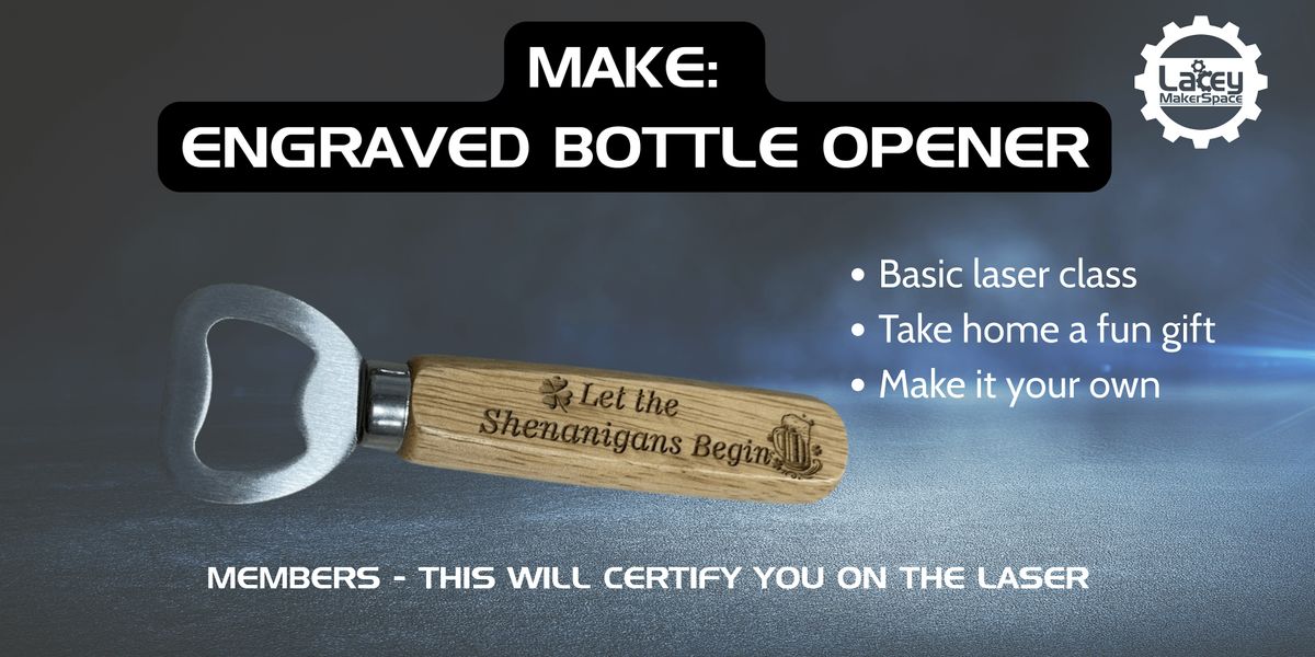 Unleash your creativity as you explore the fun and versatile world of laser engraving. In this hands‑on class, you’ll design and personalize a wooden‑handled bottle opener from start to finish. Choose from a selection of ready‑made graphics or create your own custom artwork—add names, initials, patterns, symbols, or anything that makes it uniquely yours. You can even engrave both sides for a fully customized look.
