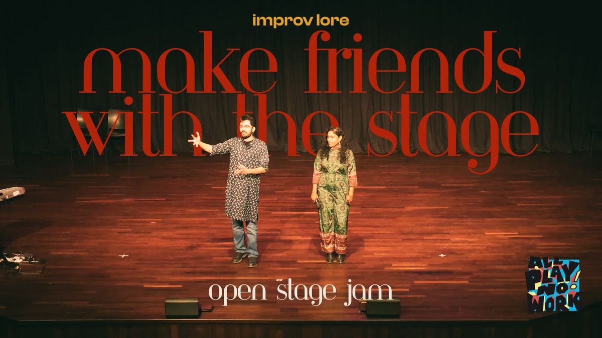 The Open Stage Jam is where you get to step in and play, and try your hand at doing some improv on stage!We’ll set up simple scenes and scenarios, guide you, and keep things moving so you’re never left figuring it out on your own. You can jump in for a scene or two, try something new, and step back whenever you like.It’s a space that’s designed to be easy to enter, and built for taking small risks. You might come in just to watch, but we're hoping you’ll leave having played.Who are Improv Lore?We are a Bangalore-based community-theatre troupe, working towards spreading the art of spontaneous storytelling & unscripted stagecraft, and rekindling the joy of being playful & whimsical. We meet on Wednesdays for Jams, and on weekends for workshops.