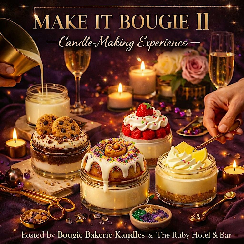 Ready to get your hands dirty and craft some seriously bougie candles? Join us for the Make it Bougie Candle II Making Course! This is an in-person event where you'll learn to create your own stunning, scented BOUGIE STYLE kandles. Whether you're a newbie or just want to up your candle game, we've got you covered. Grab a friend, bring your creativity, and let's make some magic happen together!