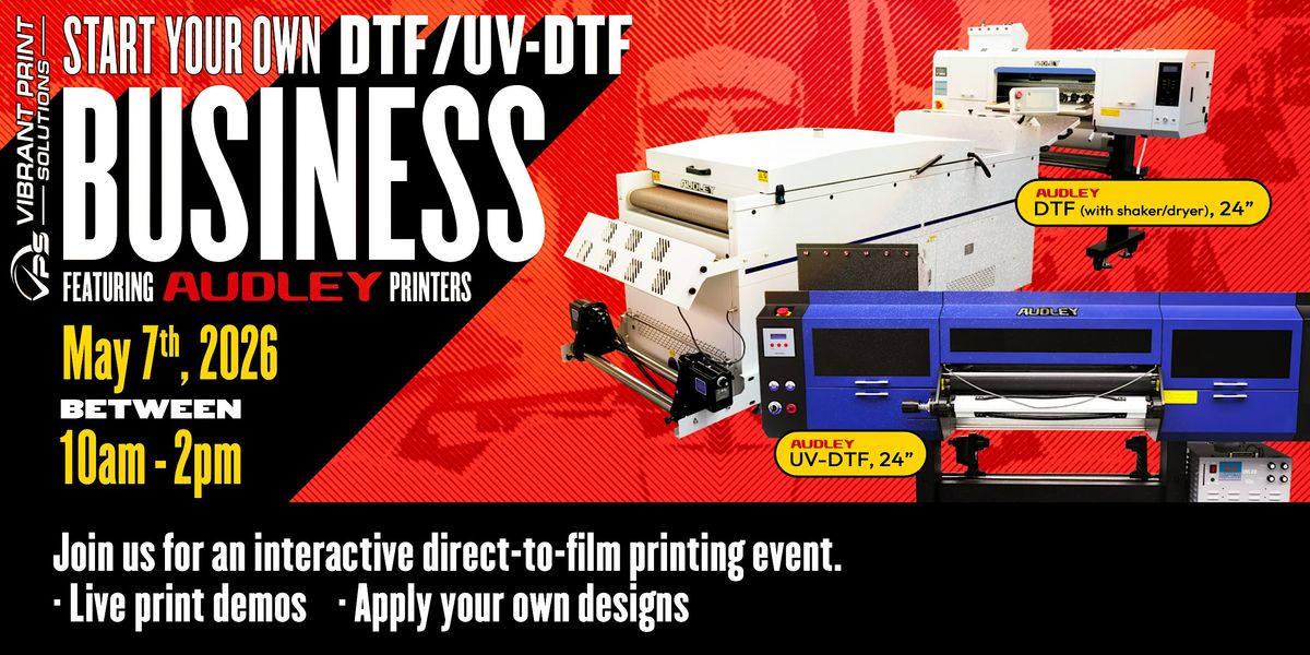 Featuring Audley 24” UV-DTF & 24” DTF (with shaker/dryer) so you can see exactly what it takes to get started.
