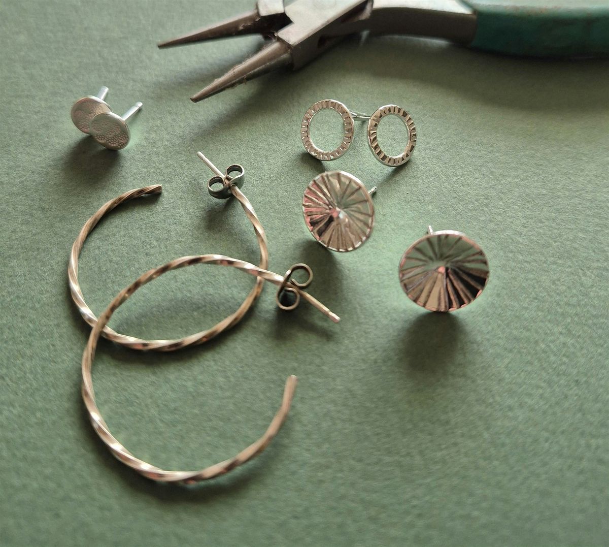 You will practise first in copper and then go on to use silver sheet and wire to make your own pair of silver ear studs and silver hoops which you can take home with you.