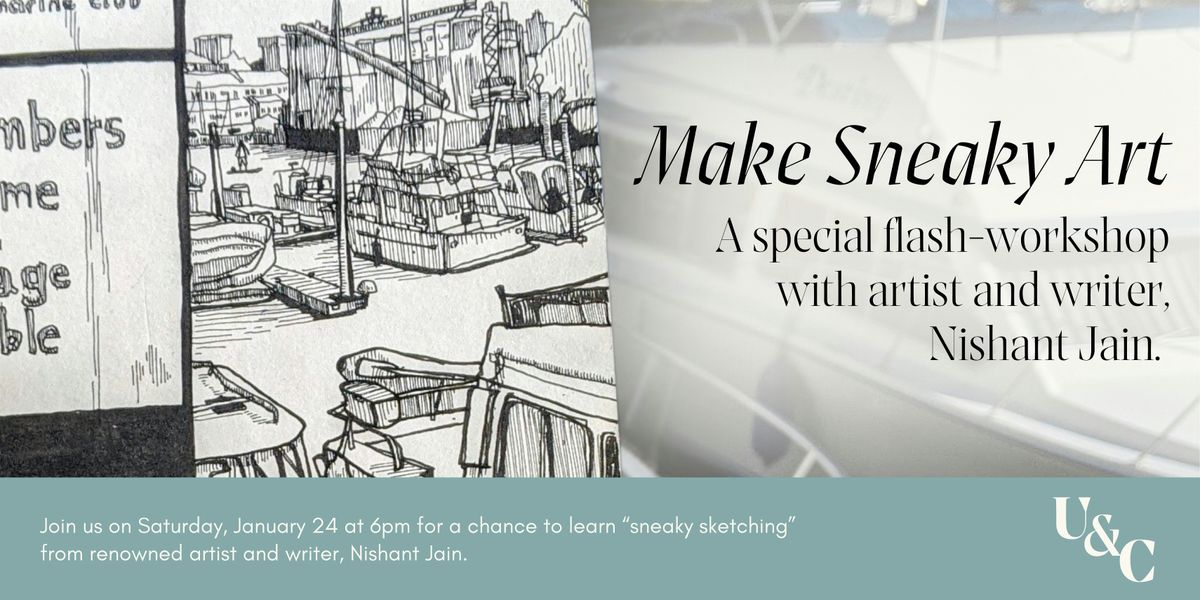 Join us on Saturday, January 24 at 6pm for a special “sneaky sketching” workshop with philosopher, scientist, engineer, writer — and now artist — Nishant Jain.