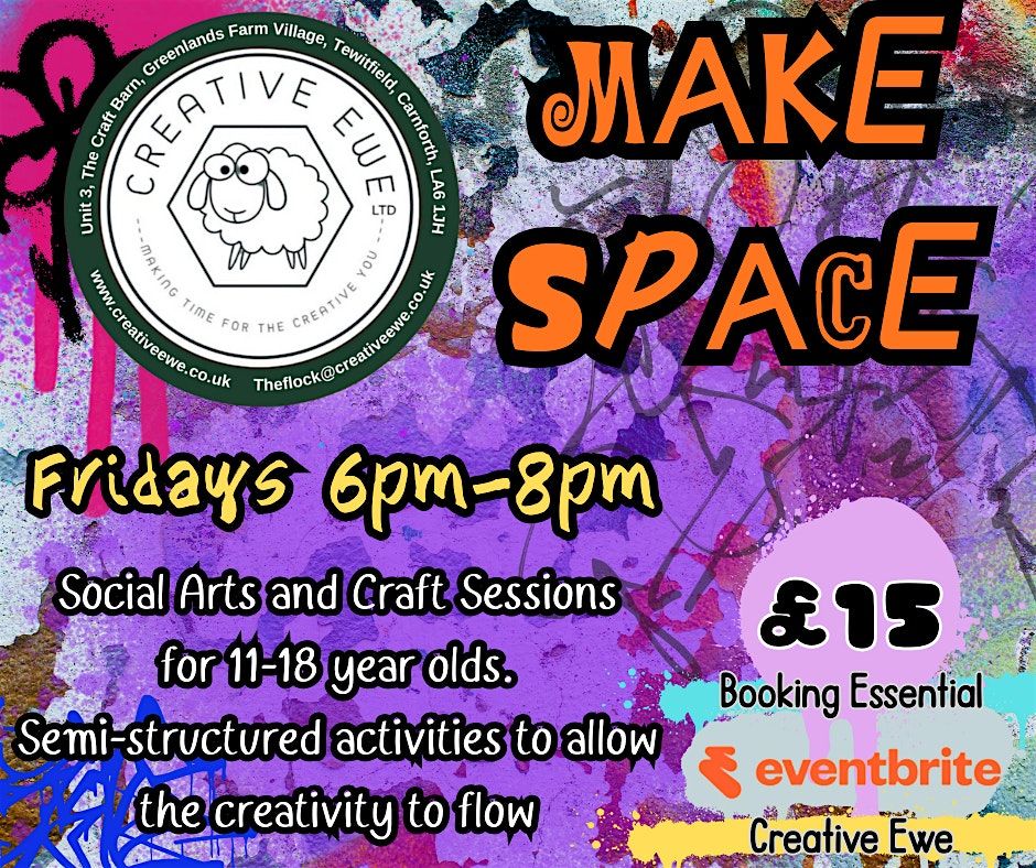 Social arts and craft session for teens aged 11-18 at our Creative Ewe art studio located in the craft barn based on the Greenlands Farm Village site (big building directly in front as you come into the car park from the main road)