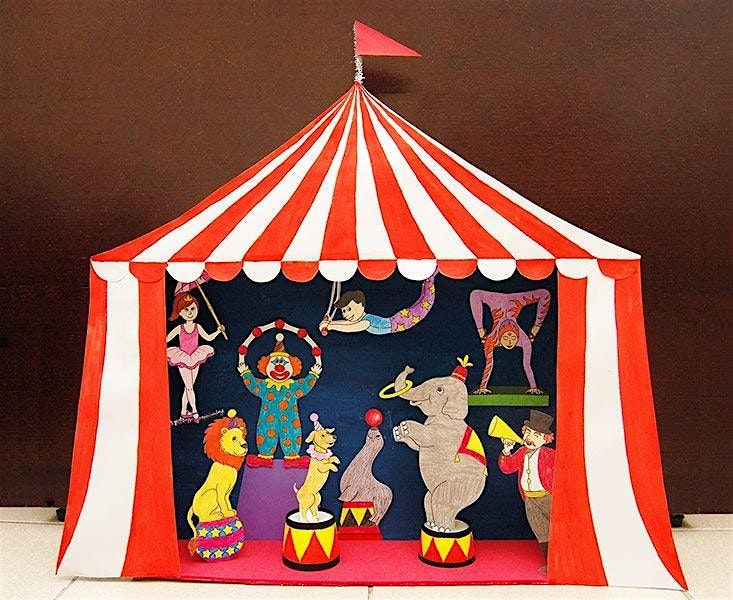 Wednesday 18th February make your own circus diorama (miniature circus), learn about dioram, how they made and make your own to take away at the end of this hour and half session.