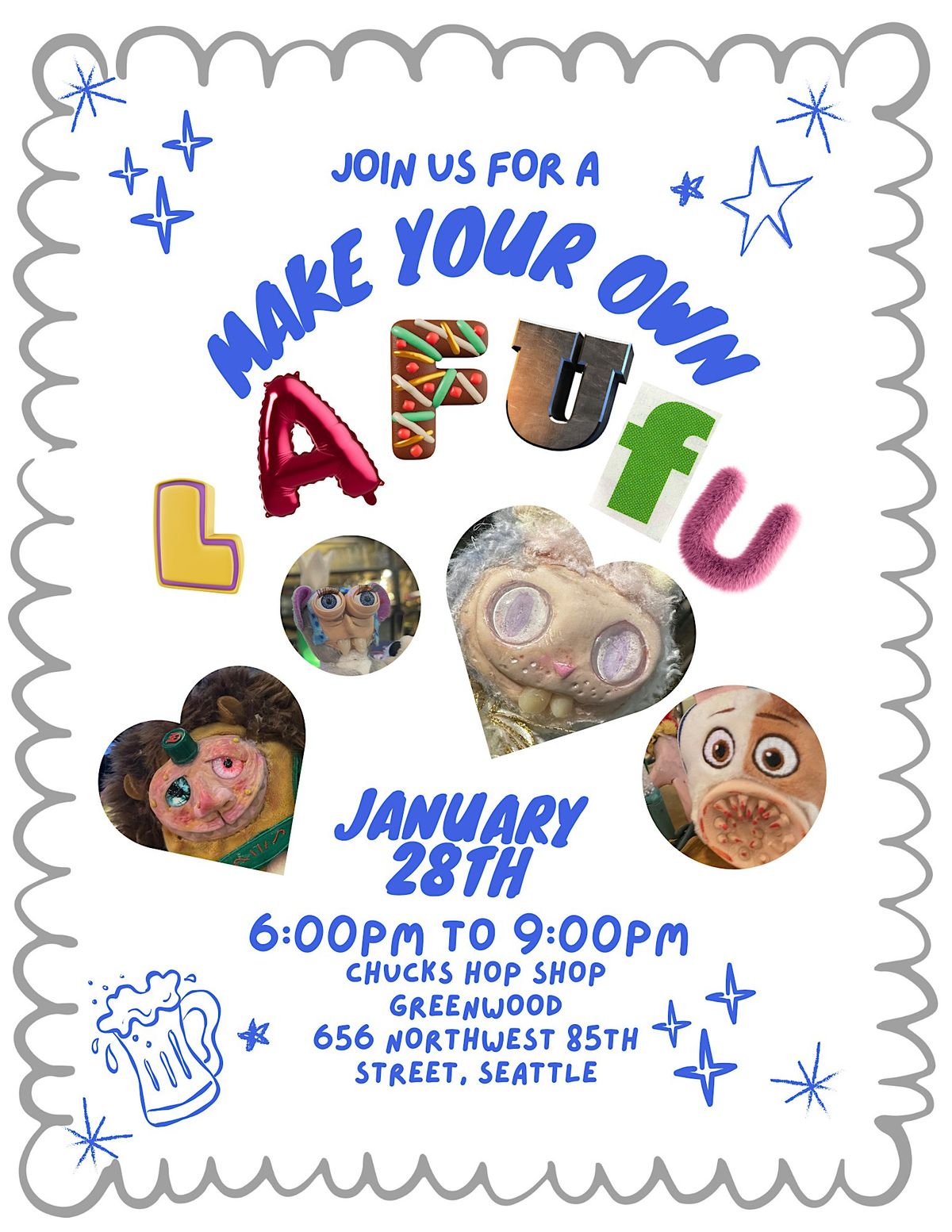 Ready to get spooky and creative? If you've looked at the bar at Chuck's you might have seen some strange dolls! Would you like to make your very own?! Join us in person at Chuck's for the Make Your own Cursed Lafufu Class! All supplies will be provided in the cost of the class!