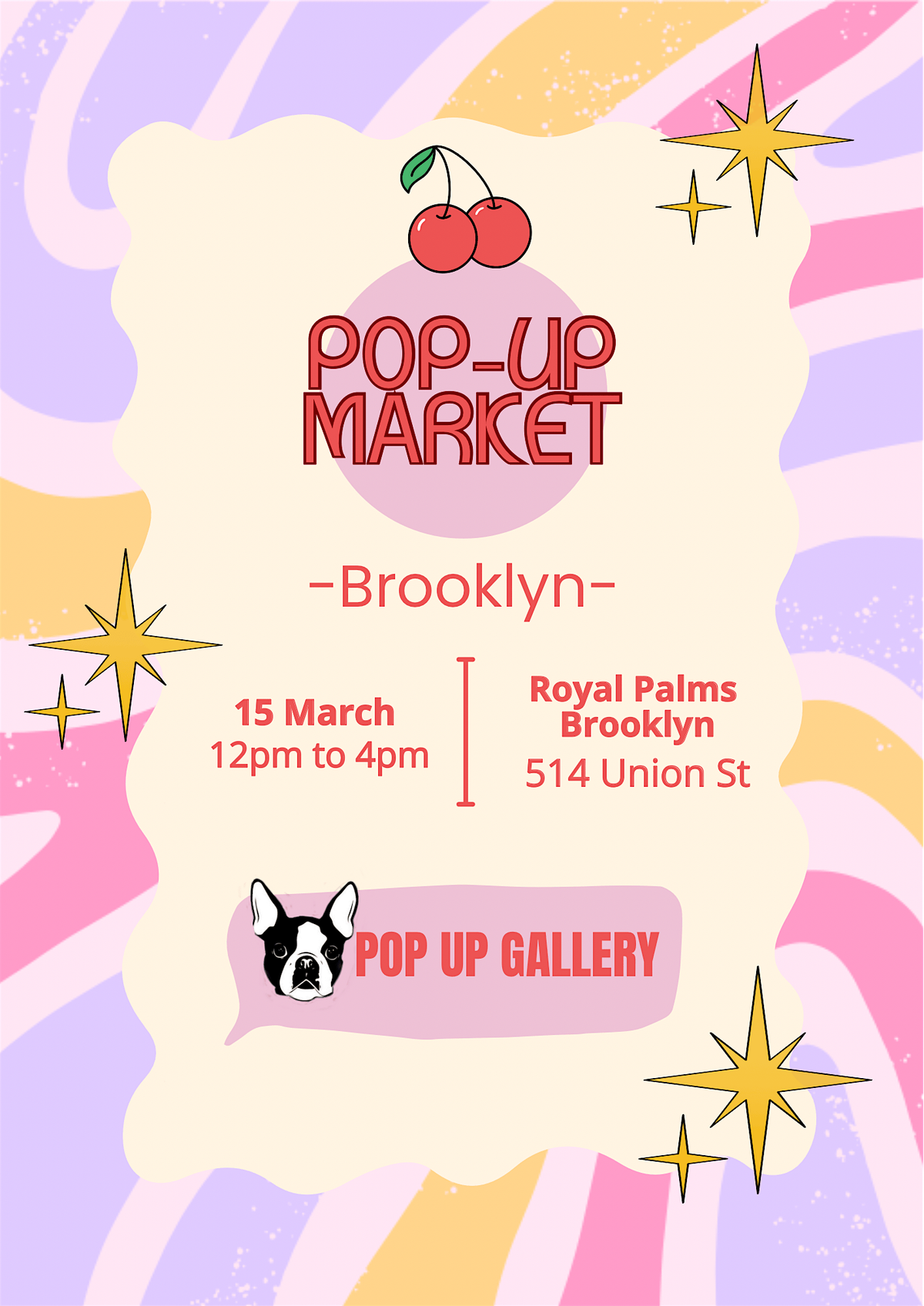 Pop Up Gallery is popping up at Royal Palms for a Sunday filled with local creativity, good drinks, and community vibes.