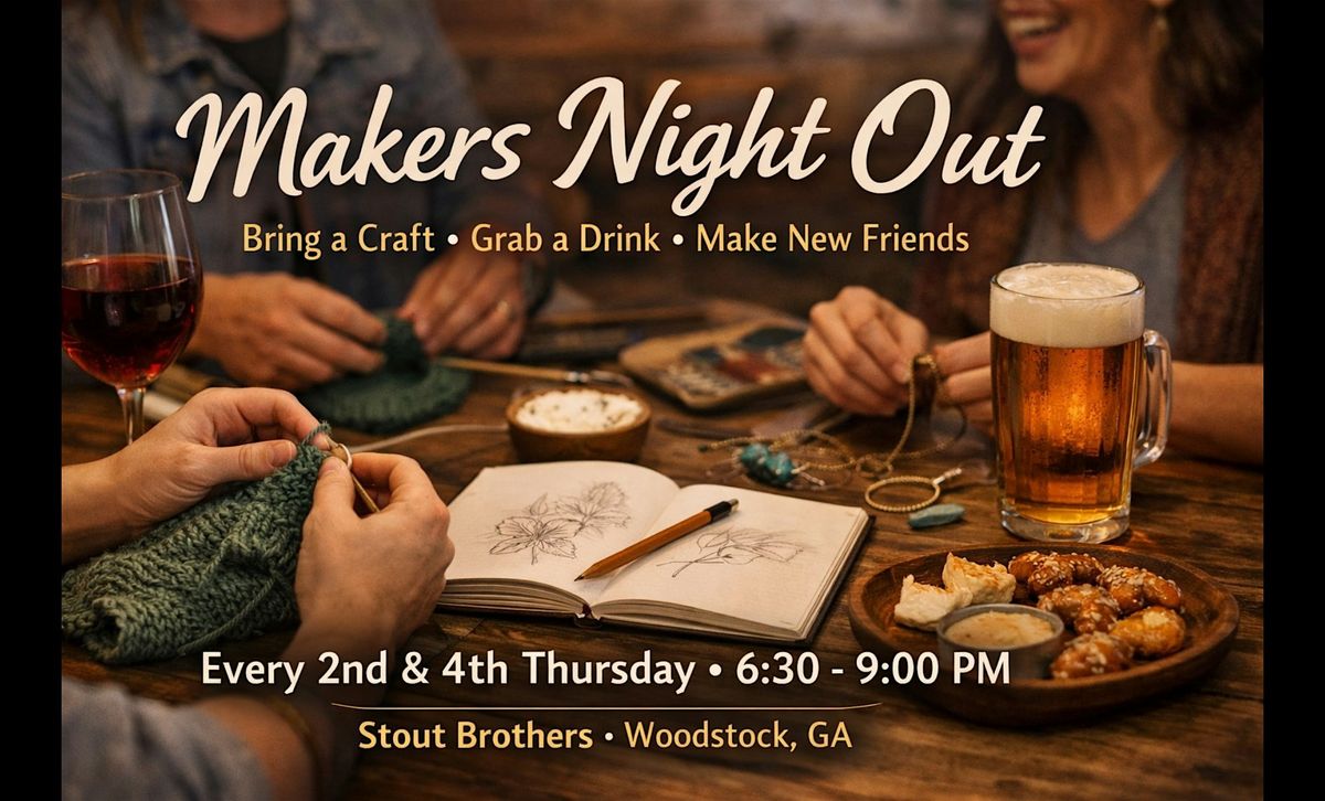 Join us for a laid-back, twice-monthly crafting meetup at Stout Brothers in Woodstock where creatives of all kinds come together to work on projects, connect, and unwind.