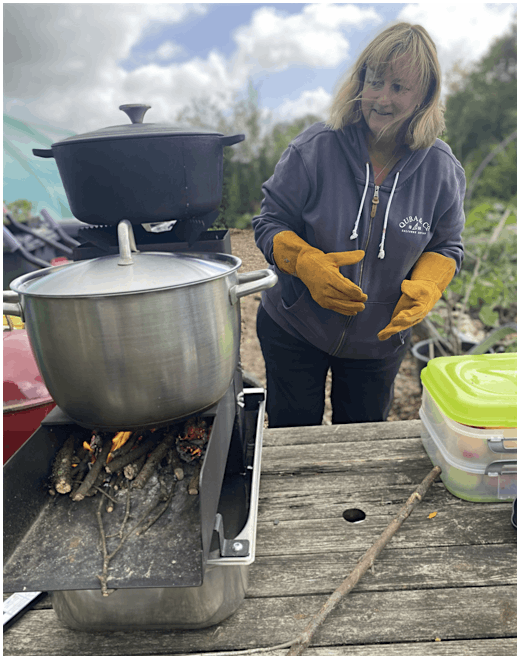 The workshop isfacilitatedby Carolyn Dare. Carolyn runs the Blackdown Hills Eco Hub and Transition Group. She has been producing biochar there and coordinates biochar development research with Plymouth University. She has been involved in various food growing and community projects, worked as a trainer. She also currently works as the East Devon Project Coordinator for CAG (Community Action Groups).