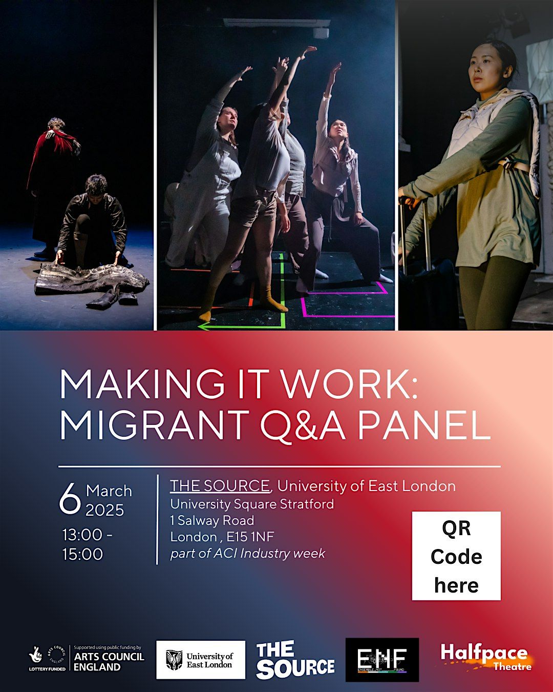 Or perhaps a fellow freelancer wondering how you can better support your migrant collaborators? Join us for a panel discussion and Q&A exploring how migrants can ‘make it work’ and thrive in theatre and performing arts. Our panelists are migrants working in a variety of fields and will discuss their experiences and advice on making your way in the UK performing arts industry. We’ll spend the first portion going through tips and tricks for your first few years in the UK, including some of the biggest challenges and opportunities available to migrant artists, followed by a Q&A where you can ask your most burning questions.