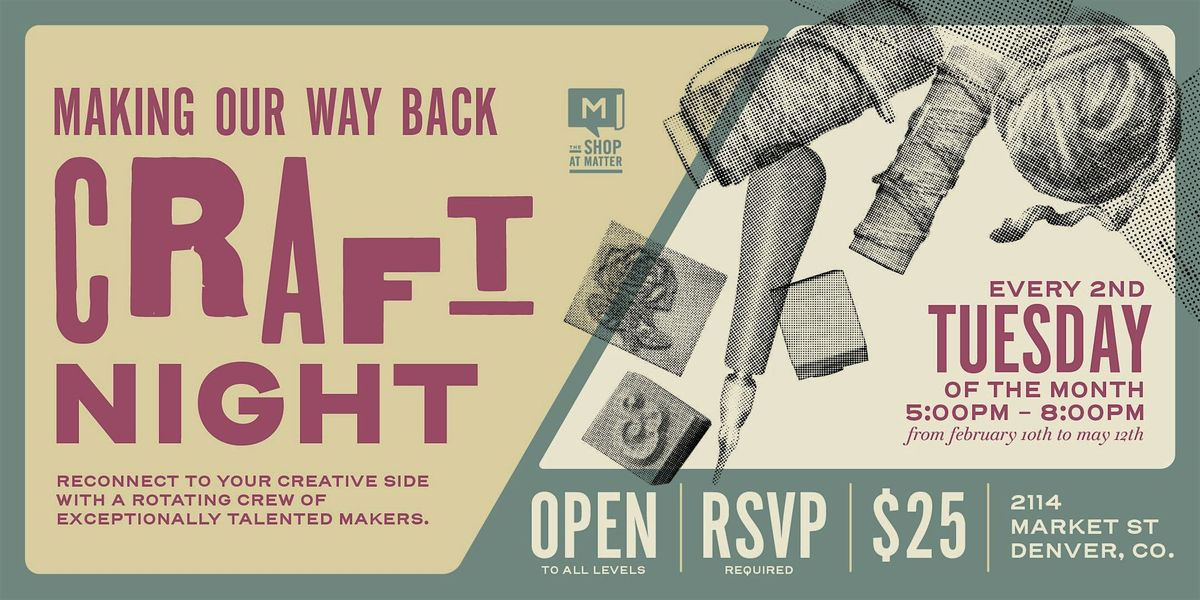 Every 2nd Tuesday of the month, 5–8 PM, we gather to slow down, get our hands messy, and explore simple, accessible crafts in a warm, community-centered environment. Each session is guided by a rotating crew of exceptionally talented makers who lead with curiosity—not perfection—so you can experiment freely and find your own rhythm.
