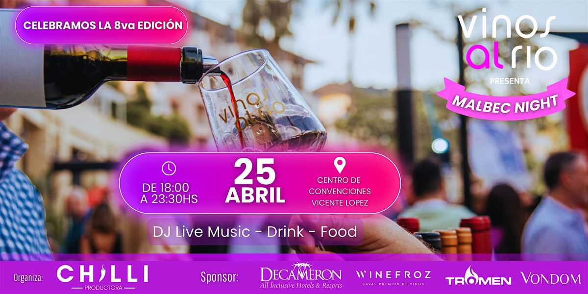 Como nos tiene acostumbrados Vinos al Río en el mes del Malbec celebraremos nuestra 7va edición de #malbecnight donde disfrutarás de los mejores Malbec de diferentes regiones Argetinas .