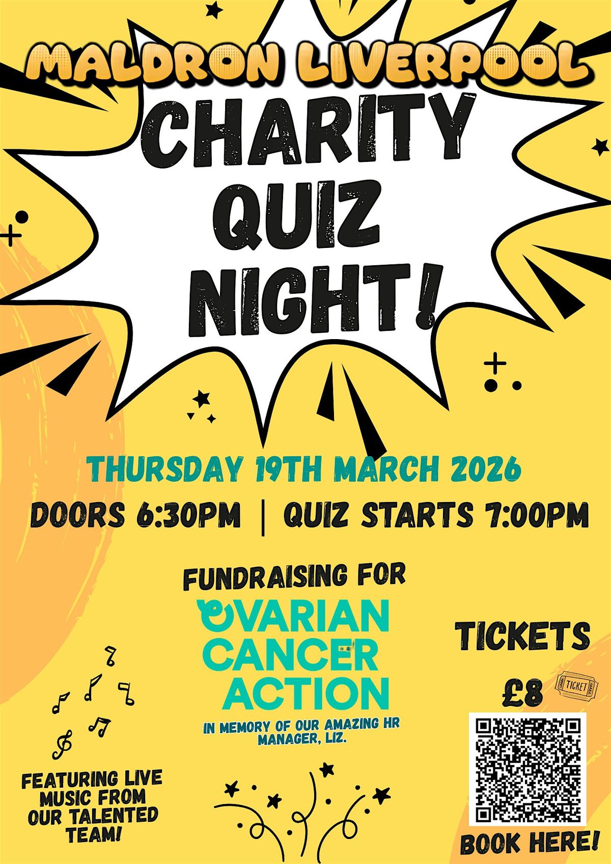 Join us for an evening of fun, friendly competition and fundraising at our Charity Quiz Night on Thursday 19th March 2026 at Maldron Liverpool.