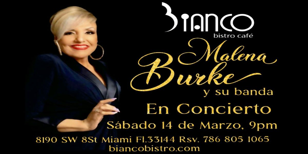 Get ready for a night of amazing music at Bianco Bistro Cafe! Malena Burke and her band will be gracing the stage with their incredible talent. You don't want to miss this one!