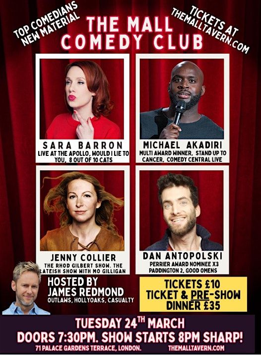 Join us downstairs at The Mall Tavern in Notting Hill for another brilliant night of stand-up at The Mall Comedy Club, where some of the UK’s best comedians come to try new material and deliver unforgettable sets in our intimate basement club.