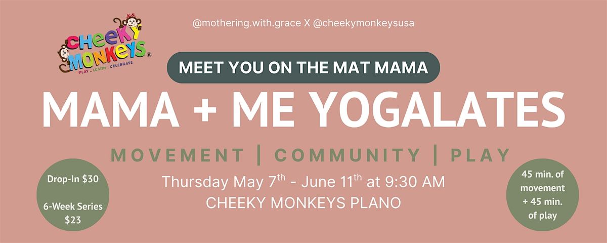 For this special collaboration with Cheeky Monkeys, your experience includes 45 minutes of Yogalates for you, followed by 45 minutes of playtime for your children — so you can move your body and then stay, relax, and connect while your little ones explore.