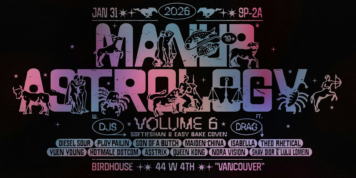 This event is being held on the stolen, ancestral territories of the Musqueam, Skxwú7mesh-ulh, and Tsleil-Waututh nations. As we live and organize queer space as settlers on these lands, we have an obligation to continuously work to repair harms perpetrated upon Indigenous communities, presently and historically. The Birdhouse strives to work with and give back to Indigenous communities in all that we do. Partial proceeds from this event will be donated to the Downtown Eastside Women’s Centre.