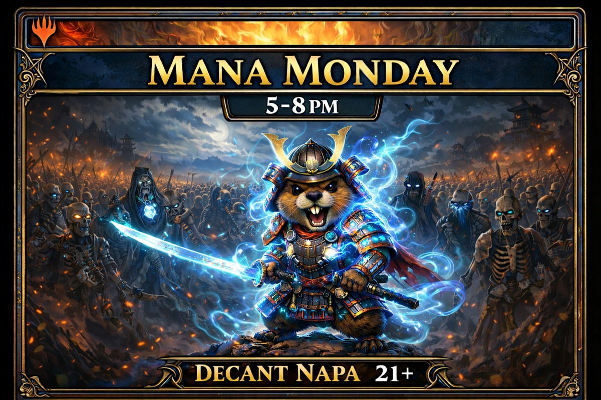 Grab your deck and head over to DECANT Napa Bottle Shop & Bar every Monday from 5:00 PM-8:00PM. Our cozy lounge provides the perfect setting for a casual game or a competitive showdown. Meet fellow Magic players, trade cards, and test your strategies. Whether you're looking to hone your skills or just have a good time, MANA MONDAY is the place to be. See you there!