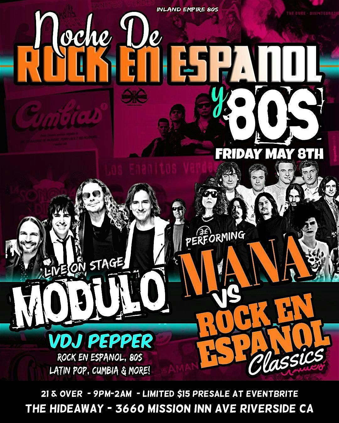 Live Mana vs Rock en Español tribute by Modulo! Friday May 8th at The Hideaway in Riverside!About this Event