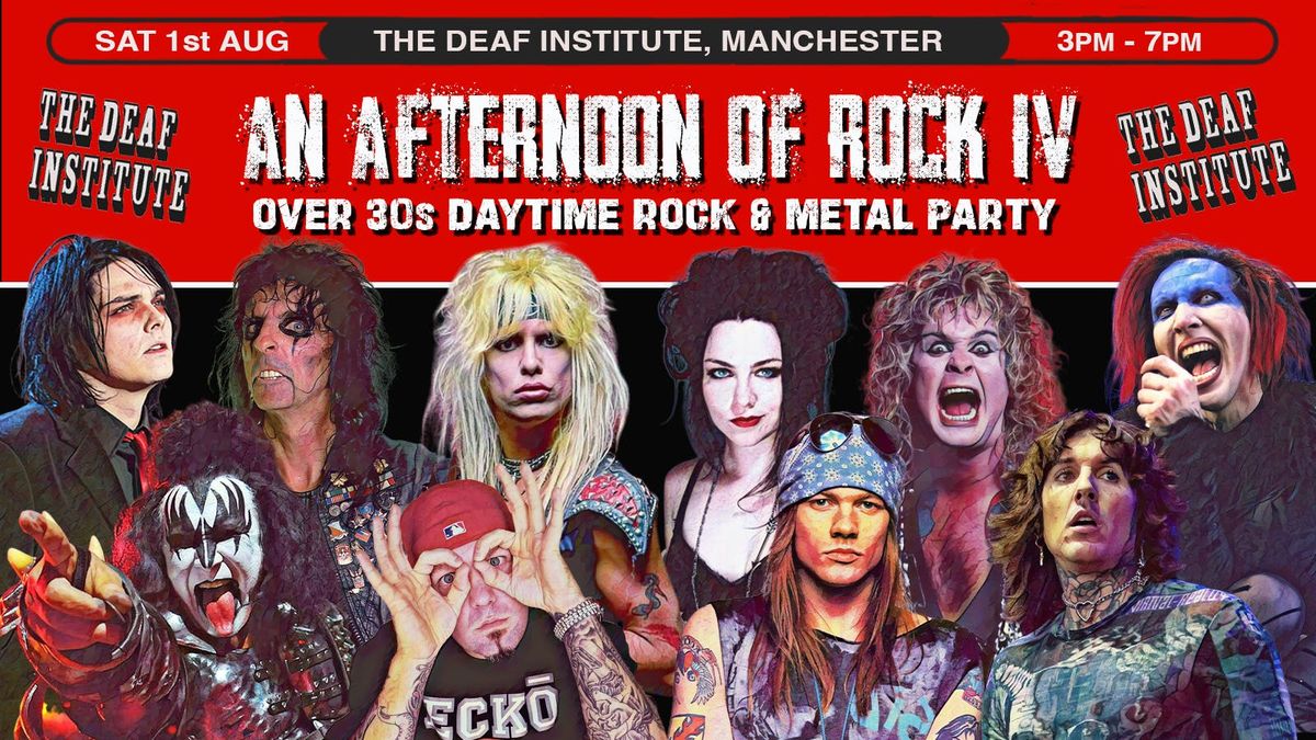 After a sold out event in March, An Afternoon of ROCK & METAL is returning to MANCHESTER to bring another daytime rock and metal party to all you over 30sAfter sold out events here in Manchester as well as in London, Sheffield Leeds and more, we're back at The Deaf Institute with another mix of well known rock, hair metal, pop-punk, grunge and nu-metal hits from across the decades so they'll be something for everyone. Come and rock out or just come and meet like-minded rockers your age.