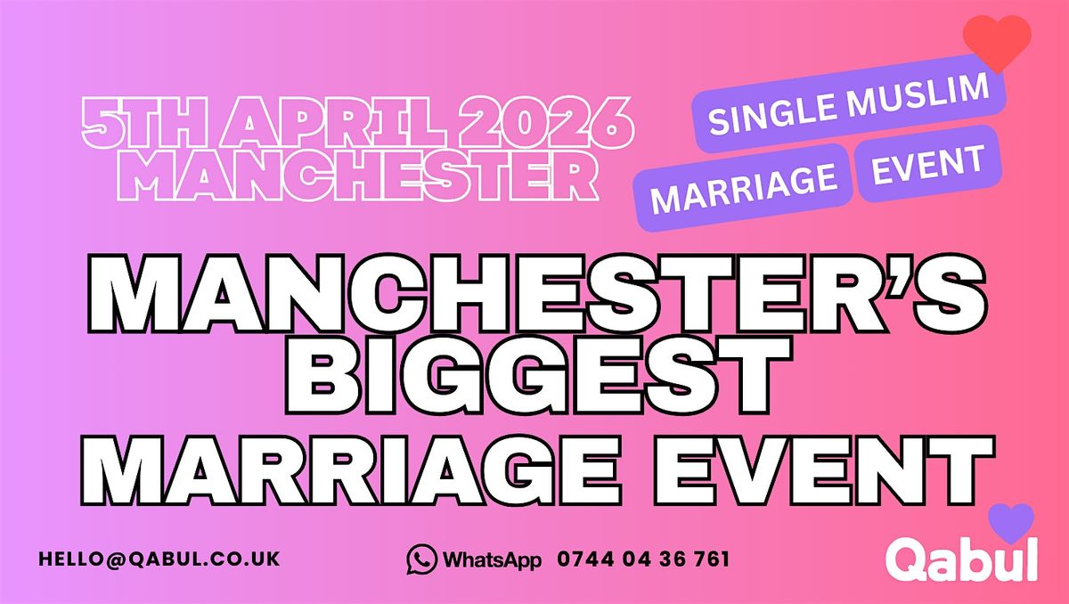 Qabul Events invites you to a carefully curated, face-to-face Muslim marriage event in Manchester on Saturday, 30th May 2026.