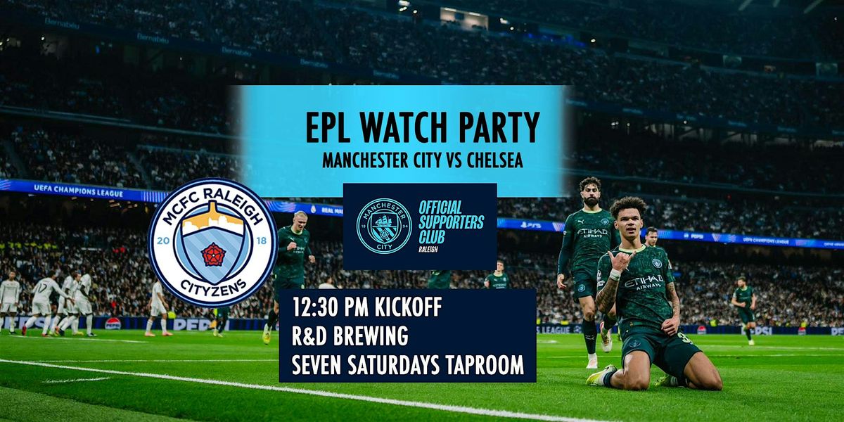 Come join us for the EPL watch party as ManCity takes on Chelsea FC in the English Premier League! The MCFC Raleigh Chapter is hosting this event at R&D Brewing - Seven Saturdays Taproom. Get ready to cheer on your favorite team, enjoy some cold drinks, and hang out with fellow fans!