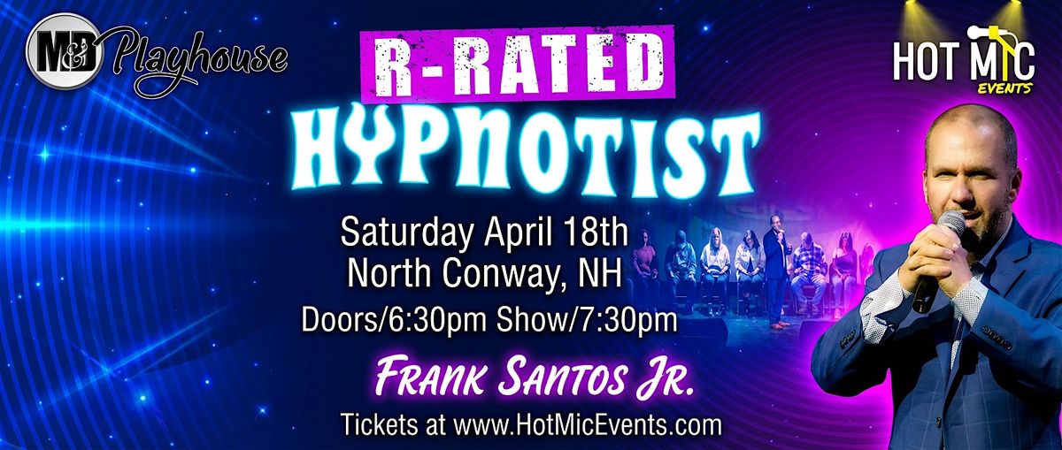 Get ready for a night of wild laughs and mind-bending fun with Frank Santos Jr. at M&D Playhouse! This in-person show brings you the hilarious antics of the R Rated Comic Hypnotist—expect the unexpected as Frank hypnotizes volunteers with his sharp wit and edgy humor. Don't miss the chance to see a show that’s as bold as it is entertaining! M&D Playhouse and Hot Mic Events invite you to an unforgettable night of laughter, surprise, and jaw-dropping entertainment with world-famous comic hypnotist Frank Santos Jr. Get ready for a no-holds-barred evening where the unexpected happens, the audience becomes the star, and nothing is quite what it seems.