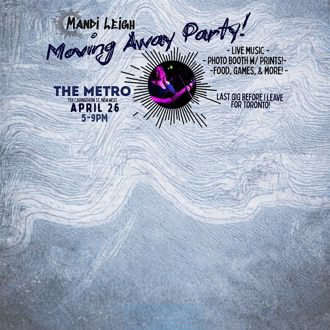 Join Mandi Leigh Music for a special Moving Away Event celebrating the journey so far and the road ahead. This one-night event features a full band performance by Mandi Leigh, bringing her signature blend of folk country rock, rock, and pop to the stage. Included in the ticket price and beyond the music, guests can enjoy games, food, one free non-alcoholic drink, and a photo booth with digital photos and unlimited on-the-spot prints, making it a night to remember.