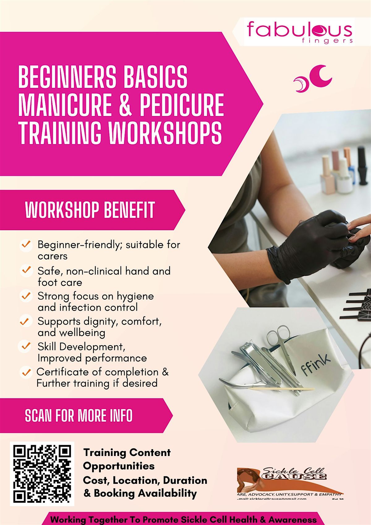 Ideal for carers, support workers, and those new to nail care, this training also offers pathways to ongoing skill practice, as well as volunteering and income-generating opportunities through our service partnership with SC.CAUSE.