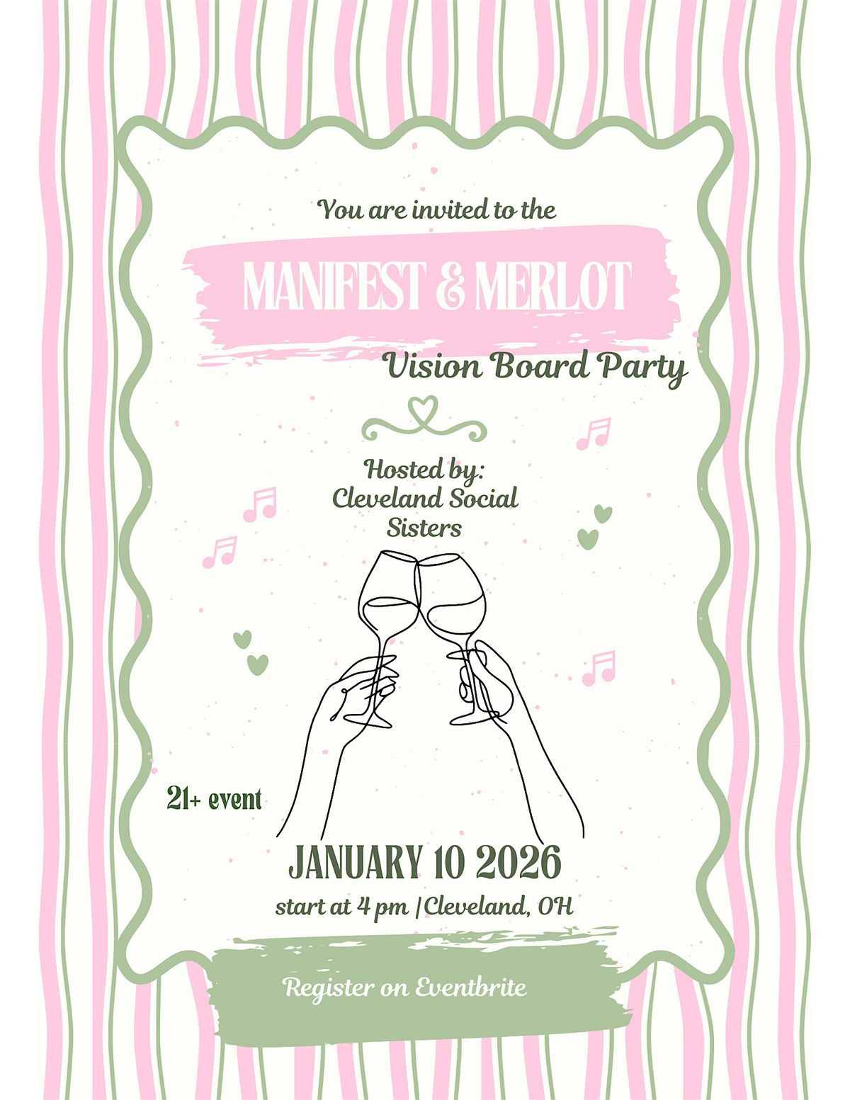 Manifest & Merlot is a cozy and inspiring gathering designed for women in their 20s and 30s to connect, unwind, and step into the new year with intention. Set in a welcoming wine bar atmosphere, this event blends meaningful networking with fun and creativity as guests sip on wine, spark new friendships, and create vision boards that reflect their goals and dreams for the year ahead. Whether you’re looking to meet like-minded women, expand your circle, or simply enjoy a night of good vibes and inspiration, Manifest & Merlot is the perfect space to manifest, mingle, and toast to what’s next. 🍷✨