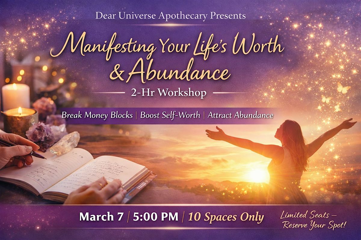 In this two-hour, in-person class, you’ll be guided through a grounded, step-by-step approach to manifesting self-worth and abundance. The kind that shows up in real life (not just your journal).