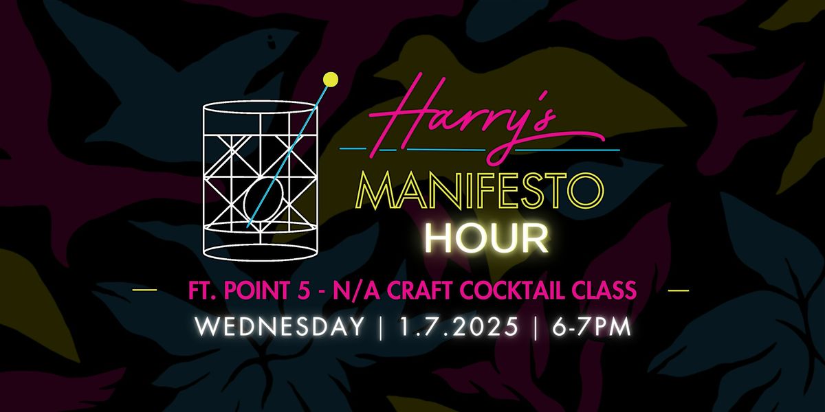Discover the art of N/A Craft Cocktails as Manifesto Hour teams up with Point 5, a leading alcohol-free beverage distributor bringing big flavor and bold creativity to the world of N/A cocktails. This hands-on class transforms the Library at Harry’s into an interactive tasting lab—where you’ll shake, stir, and sample beautiful N/A Craft Cocktails while learning the techniques behind balance, structure, and flavor-building.