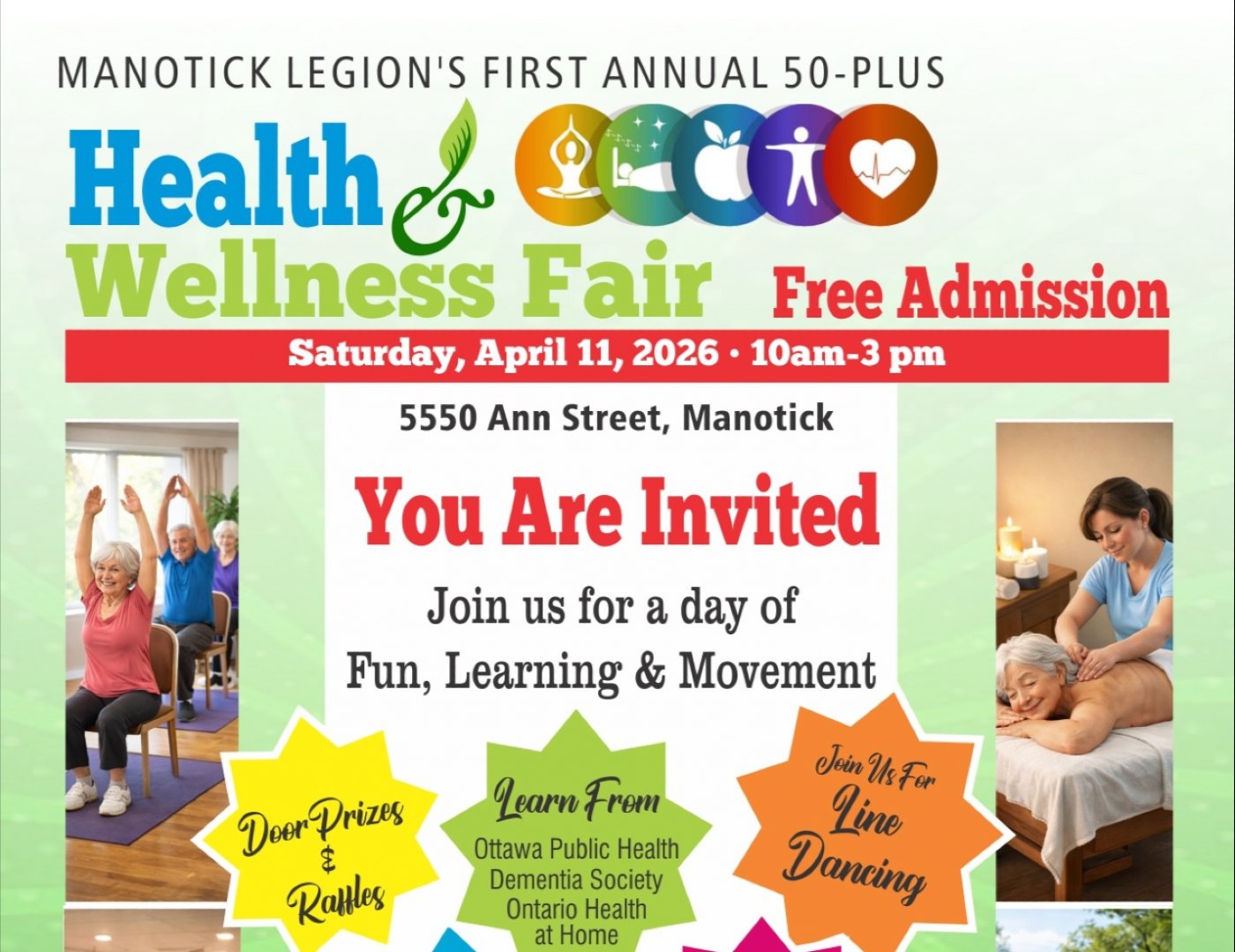 Manotick Legion Branch 314 will host a 50-Plus Health & Wellness Fair on Saturday, April 11, 2026 — a vibrant day dedicated to healthy, active living for adults aged 50 and over.