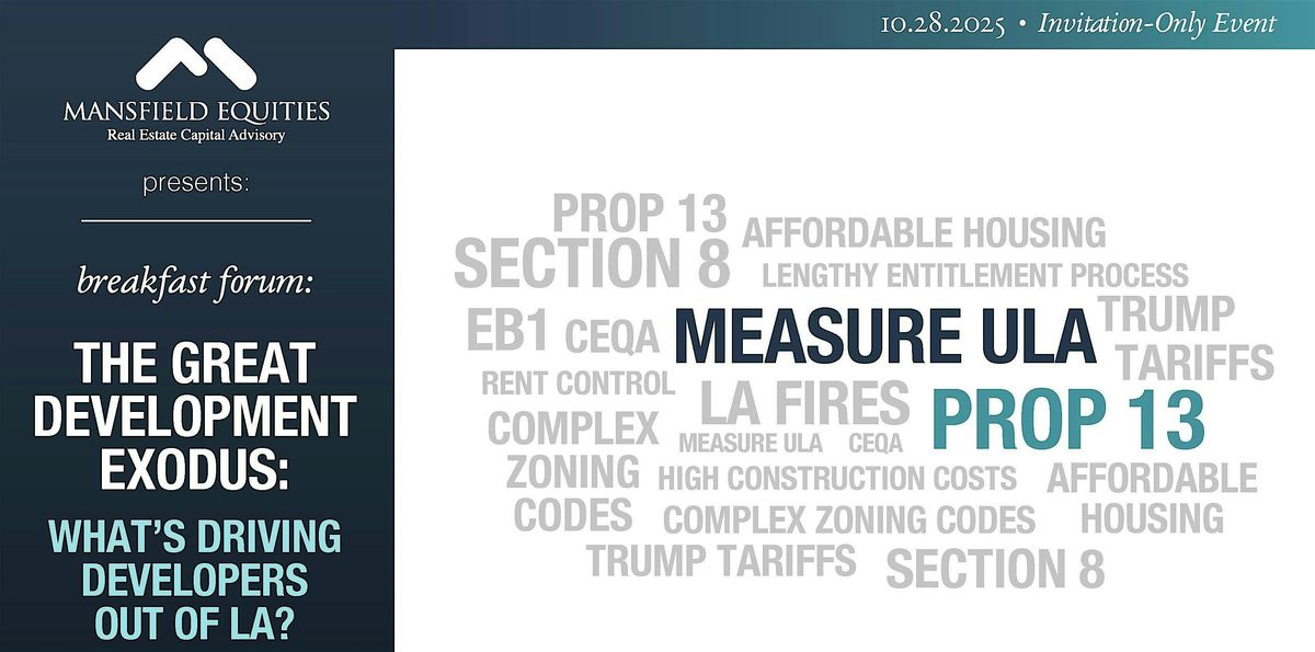 Join Mansfield Equities and our expert panel - The Great Development Exodus: What’s Driving Developers Out of LA?About this Event