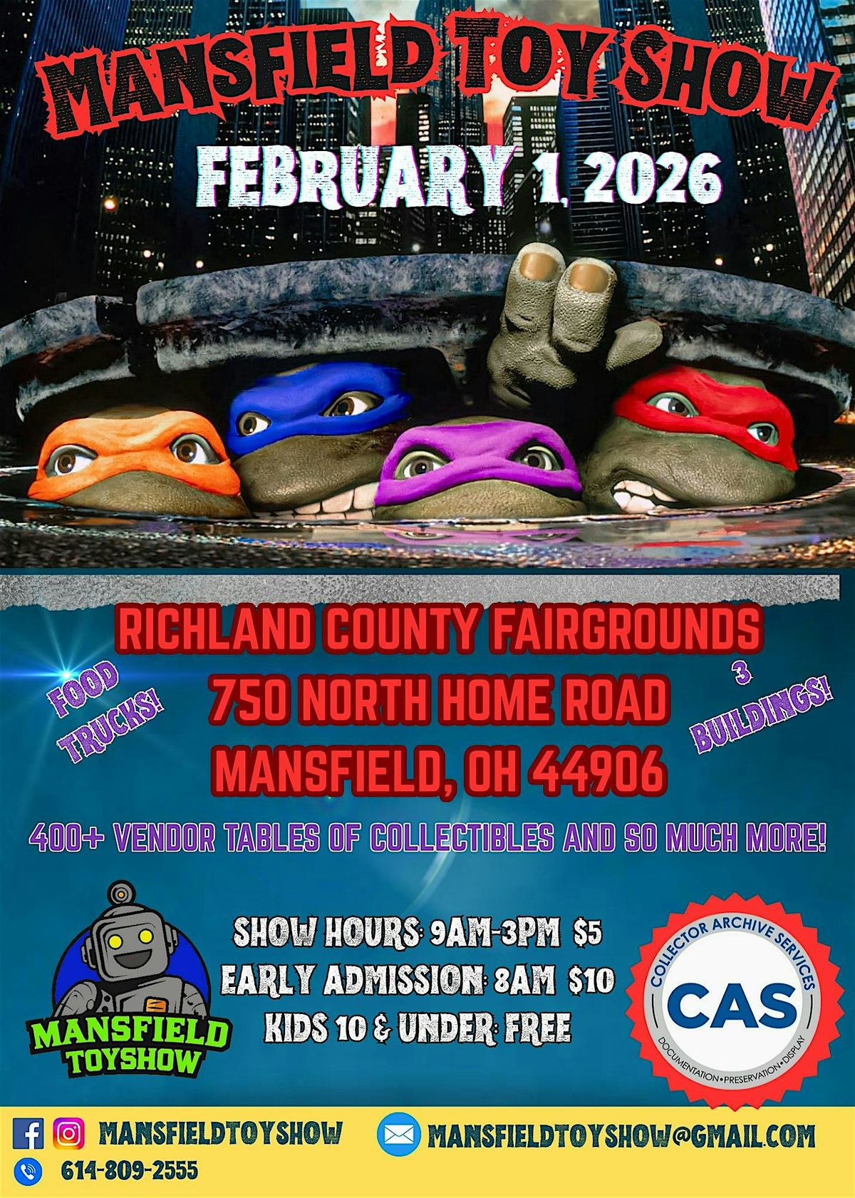 Come join us at the Richland County Fairgrounds for a fun-filled day of all things toys. Whether you're a collector or just love toys, this event is perfect for you. Explore a wide variety of toys, from vintage classics to modern favorites. Meet fellow toy enthusiasts and maybe even find that special piece missing from your collection. Don't miss out on this exciting event!