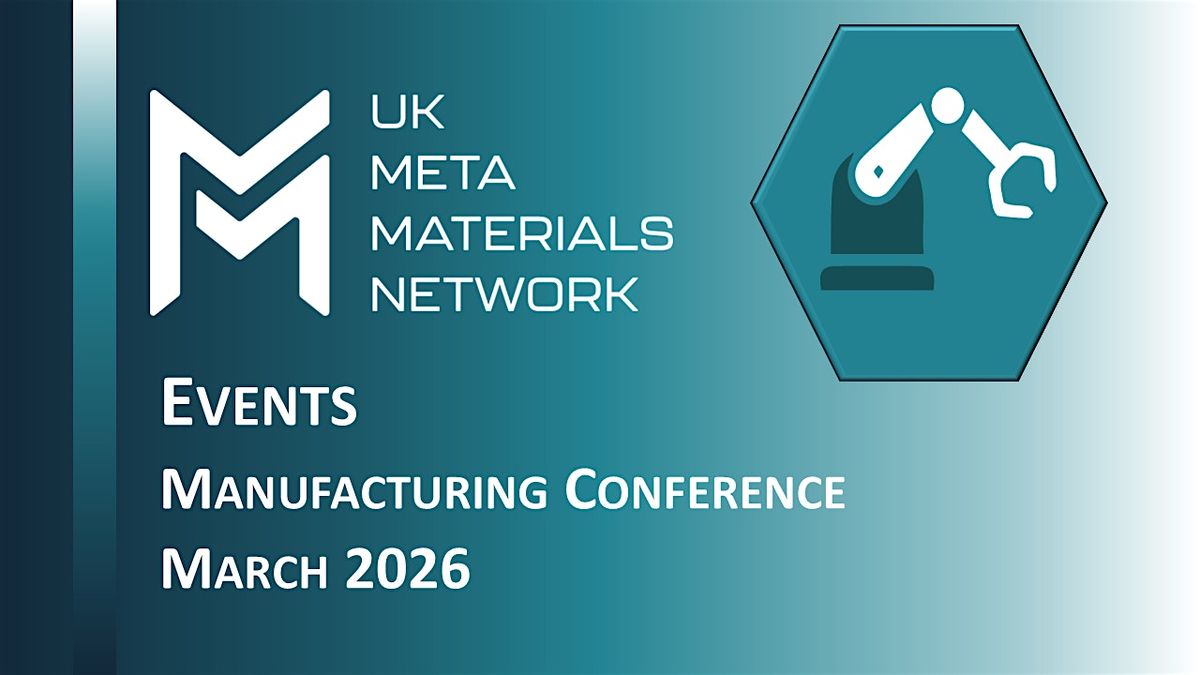 Understanding how metamaterials can be made consistently, reliably and at scale is one of the biggest barriers to the establishment of a thriving metamaterials industry in the UK and around the world. The scientific principles of metamaterial properties have in many cases been well established by academic work, but at this stage there is a pressing need for academic researchers with expertise in manufacturing, materials, design, and metrology to tackle the challenge of establishing robust and scalable manufacturing routes for a wide range of metamaterial devices. The 1st Metamaterials Manufacturing Conference, organised by the Manufacturing Challenge team within the UK Metamaterials Network, will bring together academic researchers and industrialists working on this challenge. Over two days the event will include presentations of recent research findings, invited talks on the most pressing challenges in the field, and networking opportunities including discussions and knowledge exchange to build a coherent community of metamaterials manufacturing experts.