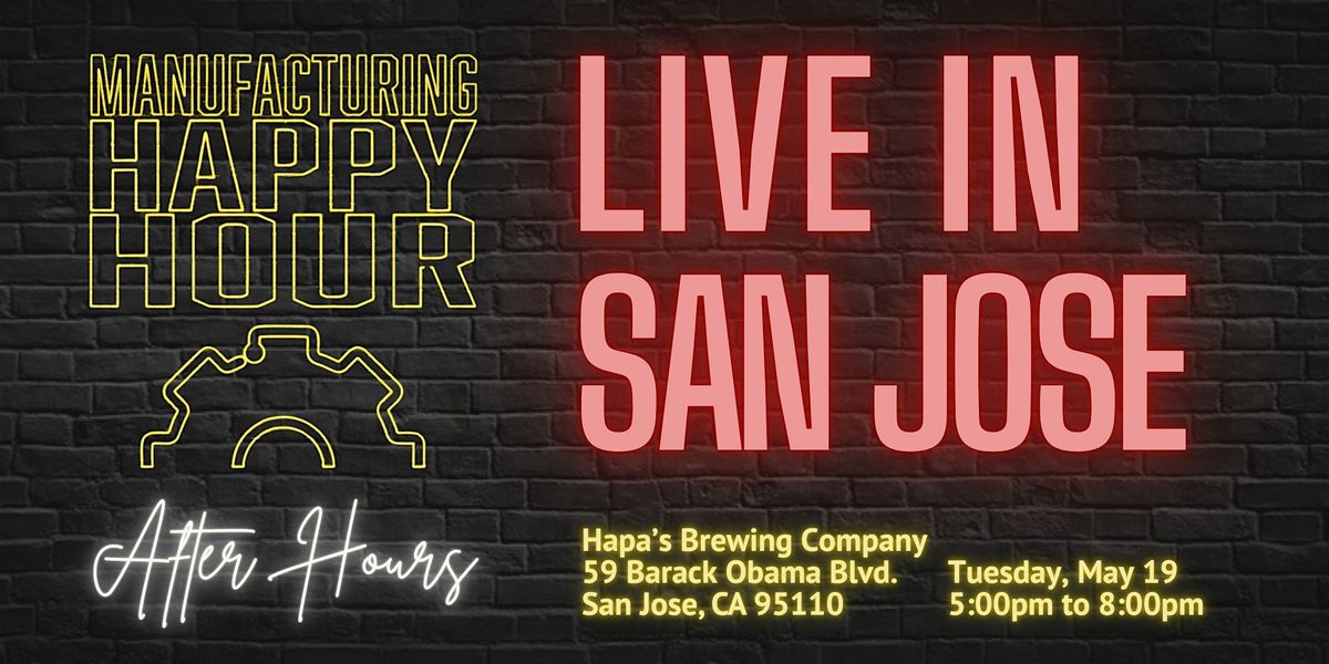 Manufacturing Happy Hour is heading back to the Bay Area where it all began! Mfg Happy Hour's Golden State Takeover Tour is bringing the party to Hapa's Brewing Company's San Jose Creekside location on Tuesday, May 19, 2026.
