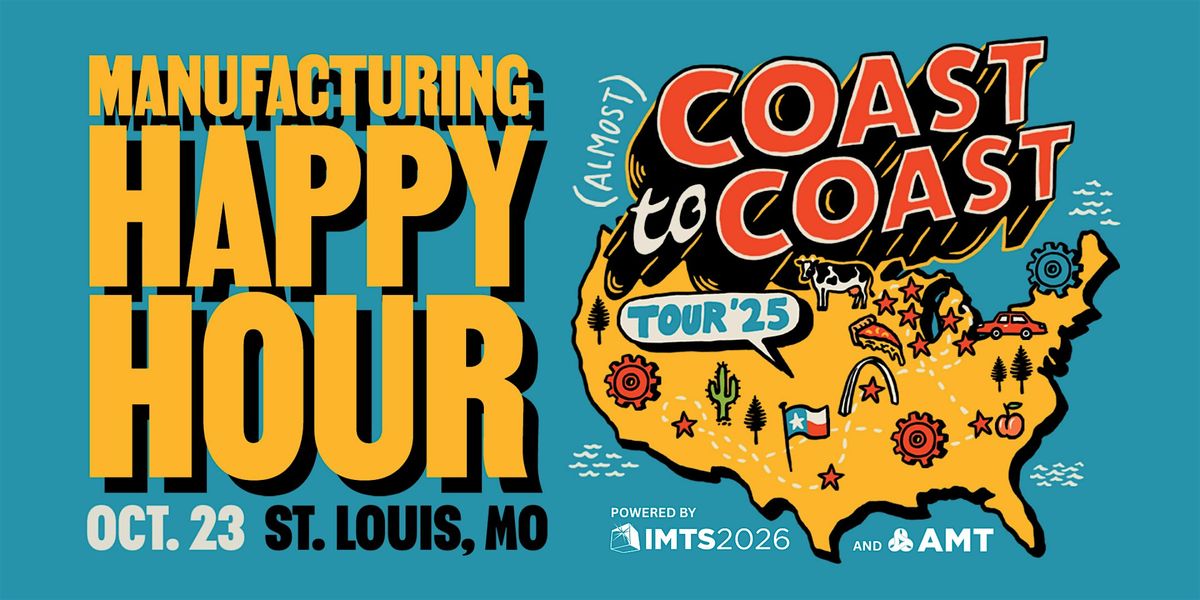 Manufacturing Happy Hour returns to St. Louis on Thursday 10/23! We will be converging at Rockwell Beer Company for an evening of connections and craft beer. Plus, we're partnering with the Association for Manufacturing Technology and turning this into a "halfway to IMTS" party, the largest industrial trade show in North America taking place September 14-19, 2026.