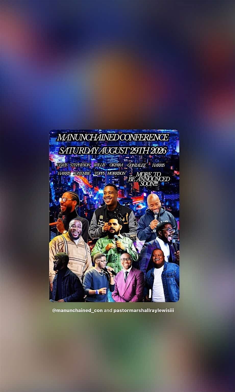 Join us in person for a day filled with incredible talks, eye opening revelations and a move of God like never before at the MANUNCHAINED CONFERENCE. If you or another brother you know, needs a day to just be a man and be poured into. Then this, is the conference you!