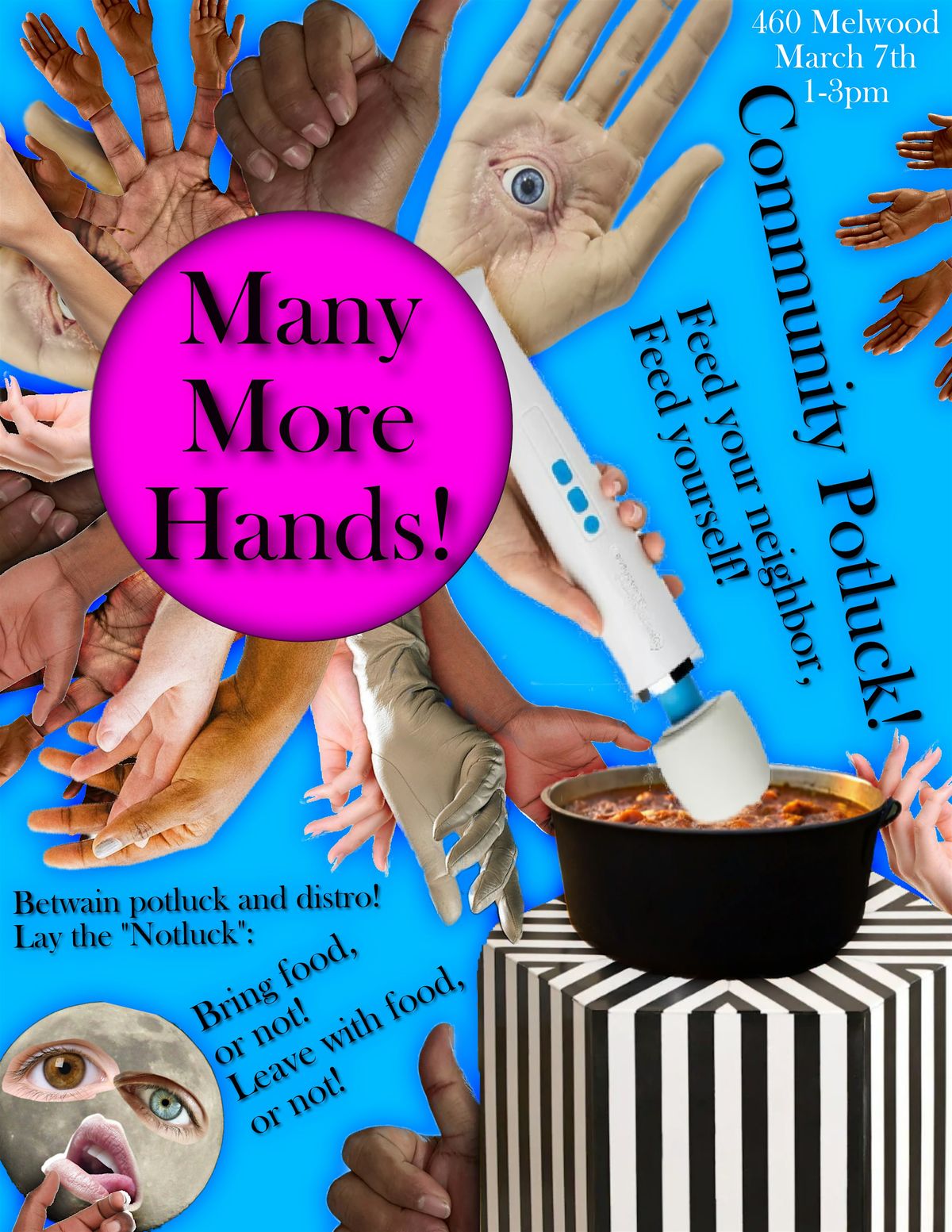 Food distro meets potluck--a not-luck. Bring food if you want, eat with the community if you'd like, leave with food if you need.