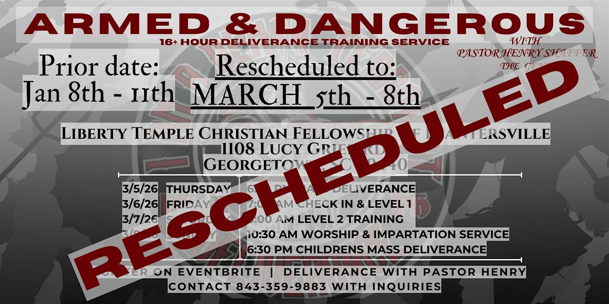 Pastor Henry Shaffer will visit Georgetown SC, from March 5th to March 8th, 2026, for a three-day deliverance training seminar.