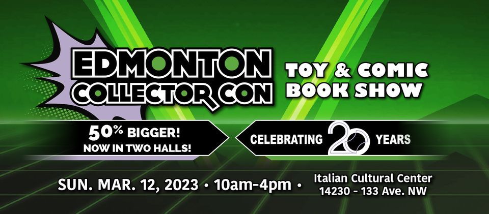 Your favourite toy and comic book show is now 50% bigger and coming to you on March 12th, 2023!We hope you'll join us to celebrate our 20th anniversary of putting on the best toy and comic shows in Edmonton! It'll be a great day of community and collecting to find some new gems for your collections!