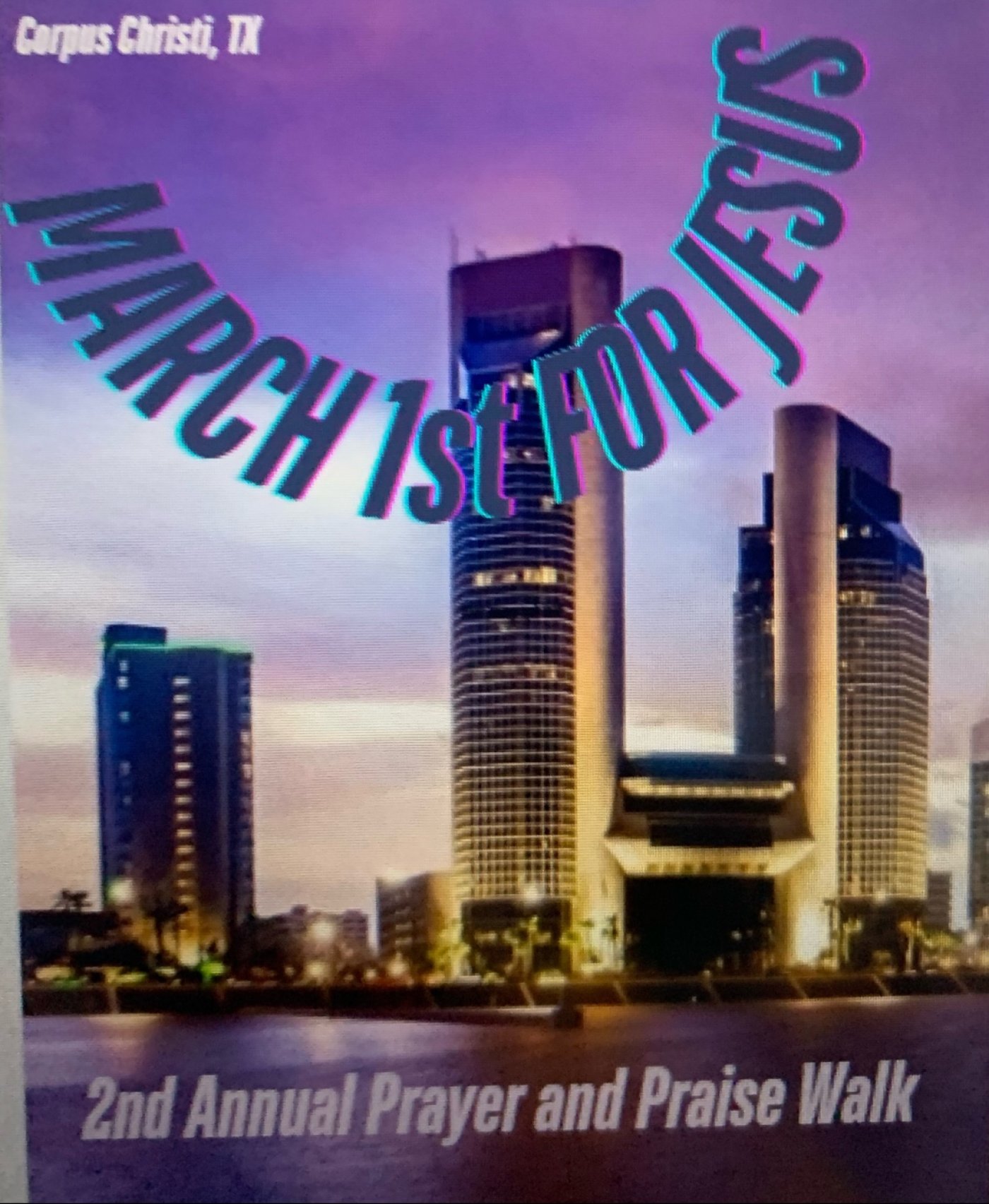 Wow Fishing Charters is hosting its 2nd annual prayer and praise MARCH FOR JESUS! We aim to serve our community by coming together in faith to bring glory to our Lord and Savior, Jesus Christ. Come out and join us for a spirit filled time of fun, fellowship, prayer, praise and worship, water baptisms and more! We will be meeting at McCaughan park and marching down the bay front to the Selena Auditorium and back, for a 2.5 mile journey. Please feel to invite your church, family, friends and neighbors, also remember to bring Jesus gear and and lawn chairs, flags, signs and posters. See you there!