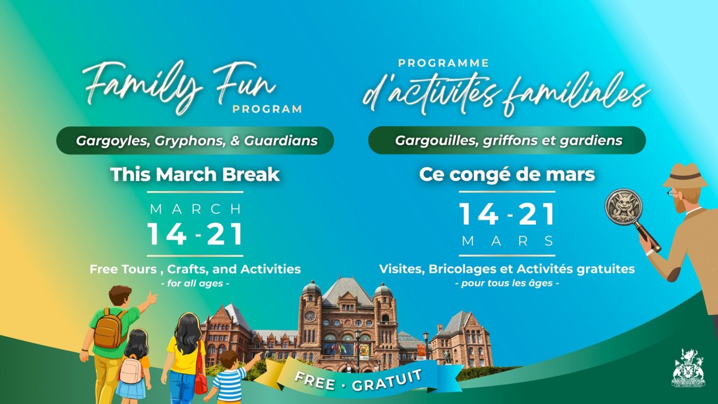 From March 14 to 21 (excluding Sundays) enjoy FREE March Break family programming at Ontario's Legislative Building!